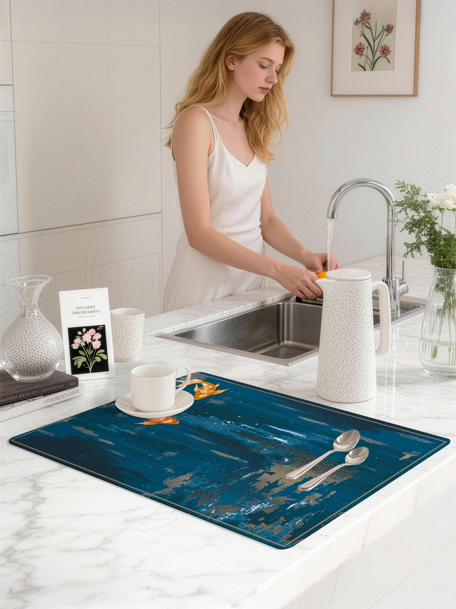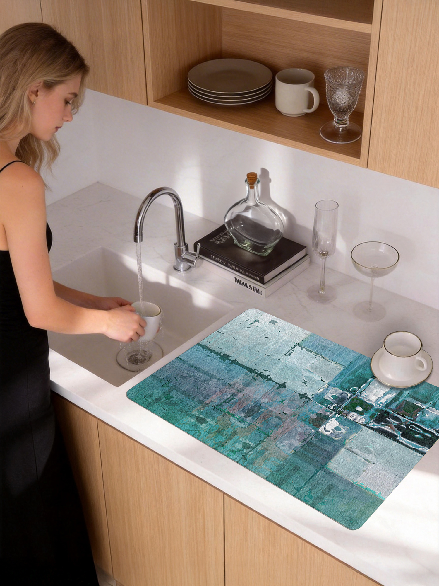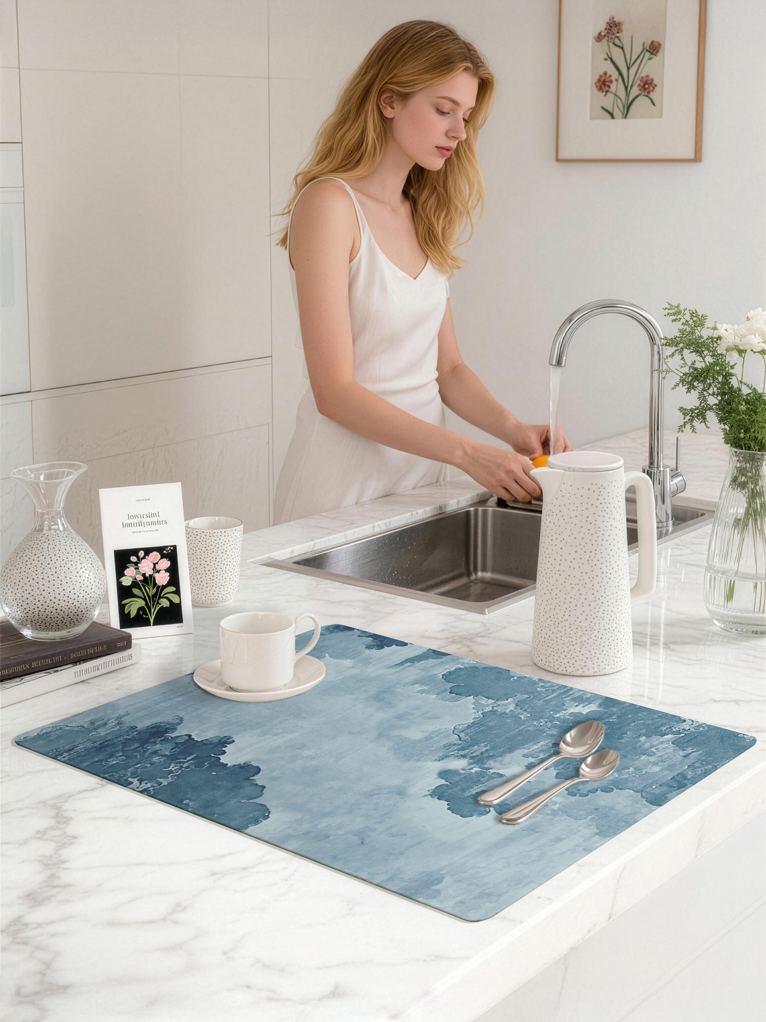 产品名称:多种规格可选简约时尚晕染花纹进口洗手台吸水垫安全防滑快速吸水不留水渍